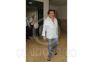 CANCÚN, QUINTANA ROO, 27ABRIL2011.- Joan Sebastian al momento de abandonar el nosocomio llamado Hospiten, donde estuvo internado tres noches tras haber caído del caballo en un show musical que ofreció el pasado domingo en la Plaza de Toros. El rey del Jaripeo, después de descender del elevador caminando y muy sonriente concedió entrevistas a los medio informativos. FOTO: MARCO POLO GUZMÁN HERNÁNDE/CUARTOSCURO.COM