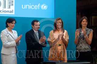 MÉXICO, D.F., 28AABRIL2011.- Cecilia Landerreche Gómez Morín, directora general del DIF nacional, Ernesto Cordero, Secretario de Hacienda, Margarita Zavala, esposa del Presidente Felipe Calderon, y Susana Sottoli, representante de la UNICEF México, firmaron un acuerdo de colaboración en el marco de la presentación del informe "Inversión pública en la infancia y la adolescencia en México 2007-20102" en el recinto del Fondo Histórico de la Secretaría de Hacienda “Antonio Ortiz Mena”, en Palacio Nacional. FOTO: MOISÉS PABLO/CUARTOSCURO.COM