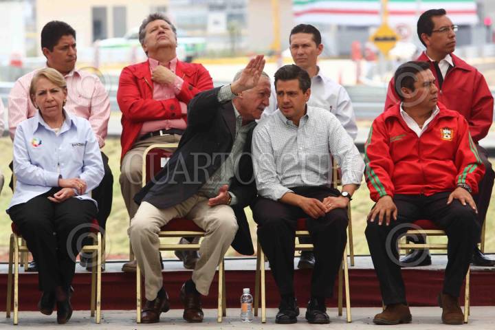 CHALCO, ESTADO DE MÉXICO., 28ABRIL2011.- Se realizó la inauguración del tramo Chalco-Neza del Circuito Exterior mexiquense, donde Enrique Peña Nieto, el gobernador del Estado de México, apuntó que dicha obra es uno de sus compromisos que benefician a la zona oriente-norte del estado. La caseta del tramo Chalco-Neza cobrara a partir de mañana 69 pesos por automovil. FOTO: SAÚL LÓPEZ/CUARTOSCURO.COM