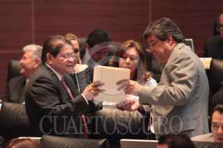 MÉXICO, D.F., 29ABRIL2011.- Los senadores Francisco Castellon Fonseca, Maria Elena Orantes, Beatriz Zavala y Guillermo Tamborrel, en la sesión del Senado de la República. FOTO: CUARTOSCURO.COM