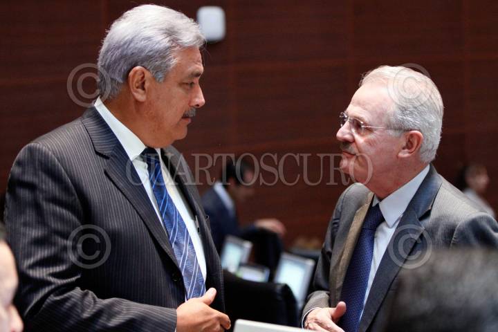 MÉXICO, D.F., 29ABRIL2011.- Los senadores Ricardo García Cervántes, PAN, Manlio Fabio Beltrones, presidente de la mesa directiva, Arturo Nuñez, PRD y Ruben Camarillo Ortega, PAN, durante la sesión en la Cámara de Senadores. FOTO: CUARTOSCURO.COM