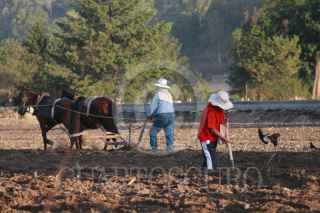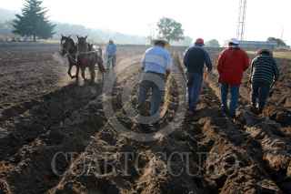 TOTOLAC, TLAXCALA, 29ABRIL2011.- Aunque en muchos lugares se cuentan con métodos modernos de siembre, los habitantes de este municipio aún laboran la siembra de maíz en los campos de cultivo con una yunta arrastrada por caballos. FOTO: J. GUADALUPE PÉREZ/CUARTOSCURO.COM