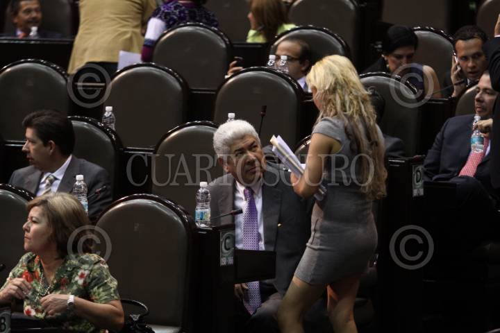 MÉXICO, D.F., 28ABRIL2011.- La diputada del PAN, Josefina Vazquez Mots conversa con el diputado del PRI, Carlos Ramírez Marin, presidente de la mesa directiiva durante la sesión ordinaria en la Cámara de Diputados. FOTO: RODOLFO ANGULO/CUARTOSCURO.COM