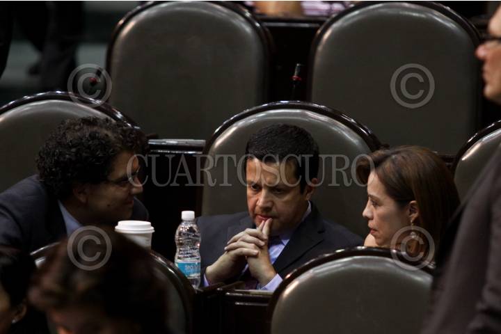 MÉXICO, D.F., 28ABRIL2011.- La diputada del PAN, Josefina Vazquez Mots conversa con el diputado del PRI, Carlos Ramírez Marin, presidente de la mesa directiiva durante la sesión ordinaria en la Cámara de Diputados. FOTO: RODOLFO ANGULO/CUARTOSCURO.COM