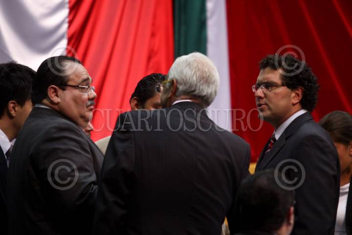 MÉXICO, D.F., 28ABRIL2011.- La diputada del PAN, Josefina Vazquez Mots conversa con el diputado del PRI, Carlos Ramírez Marin, presidente de la mesa directiiva durante la sesión ordinaria en la Cámara de Diputados. FOTO: RODOLFO ANGULO/CUARTOSCURO.COM