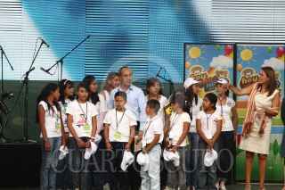 MÉXICO, D.F., 29ABRIL2011.- El presidente de México Felipe Calderón Hinojosa, acompañado de su esposa Margarita Zavala, celebraron el día de niño en las instalaciones del Parque Ecológico Bicentenario, donde convivieron con niños, quienes disfrutaron de juegos y atracciones infantiles. FOTO: SAÚL LÓPEZ/CUARTOSCURO.COM