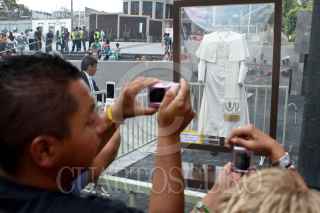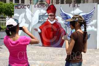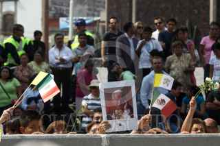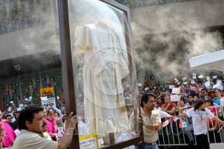MÉXICO, D.F., 30ABRIL2011.- Cientos de fieles acuden a la estatua del papa Juan Pablo II en la Basilica de Guadalupe, en este día que será beatificado en Roma, Italia. FOTO: RODOLFO ANGULO/CUARTOSCURO.COM