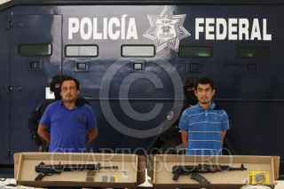 MÉXICO, D.F., 02MAYO2011.- La Secretaría de Seguridad Pública Federal, presentó ante los medios de comunicación a Jesús Cárdenas Pérez alias “El Manos” y Arturo Galindo Pérez, alias “El Guasón” como probables responsables de la muerte de Juan Francisco Sicilia. FOTO: SAÚL LÓPEZ/CUARTOSCURO.COM