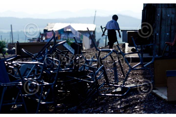 CULIACAN, SINALOA, 02ABRIL2011.- Terminaron las vacaciones de Semana Santa y cientos de niños regresan a clases, sin embargo muchos de los niños no cuentan con una escuela digna donde estudiar como la escuela primaria ubicada en la colonia Bicentenario que esta hecha de cartón, lamina y madera; el calor ya se siente cada vez fuerte y se vuelve complejo el estudio para ellos. FOTO: RASHIDE FRÍAS/CUARTOSCURO.COM