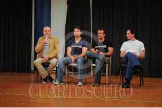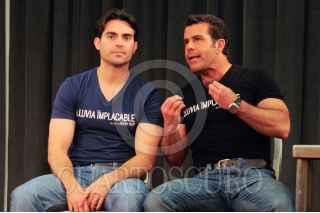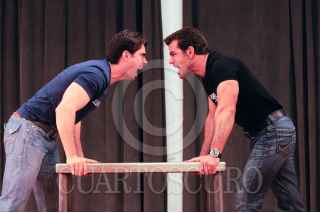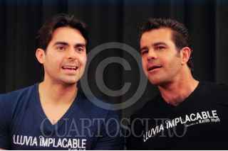 MÉXICO, D.F., 03MAYO2011.- Los actores Ernesto D Alessio y Edurado Capetillo ensayan una escena de "Lluvia Implacable." de Keith Hulf, que se estrenará el 19 de Mayo en el Teatro Jorge Negrete. FOTO: FRANCISCO RODRIGUEZ/CUARTOSCURO.COM