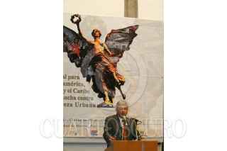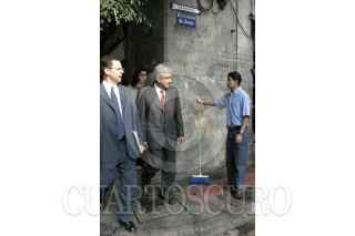 México, D. F. 19 Agosto 2004.- Andrés Manuel López Obrador, jefe del gobierno capitalino, caminó por las calles del centro histórico para dirijirse al museo de la ciudad de México, donde inauguró el segundo Taller Regional para Centroamérica, México y el Caribe sobre: Lucha contra la pobreza urbana. FOTO: Nelly Salas/CUARTOSCURO.COM
