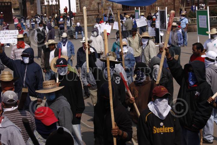 CHERÁN, MICHOACÁN, 03MAYO2011.- Habitantes de la comunidad Purépecha mantienen un estado de sitio permanente con barricadas en cada calle dentro de la comunidad de 20 mil habitantes luego de registrarse un enfrentamiento con talamontes protegidos por un grupo armado que dejó como saldo dos comuneros muertos y 10 vehiculos incinerados que fueron detenidos con madera. Los comuneros mantienen bloqueos permanentes y buscan que las autoridades garanticen su seguridad por lo que piden la presencia del ejército. FOTO: IVAN STEPHENS/CUARTOSCURO.COM