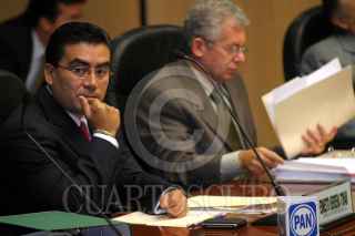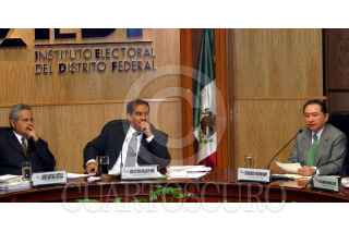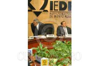 México, D.F. 19 AGOSTO 2004.- Los consejeros electorales Eduardo Huchim May y Rasa María Mirón Lince durante la votación de aprovación de la orden del dia de la sesión extraordinaria en el IEDF. FOTO: Sandra Perdomo/CUARTOSCURO.COM