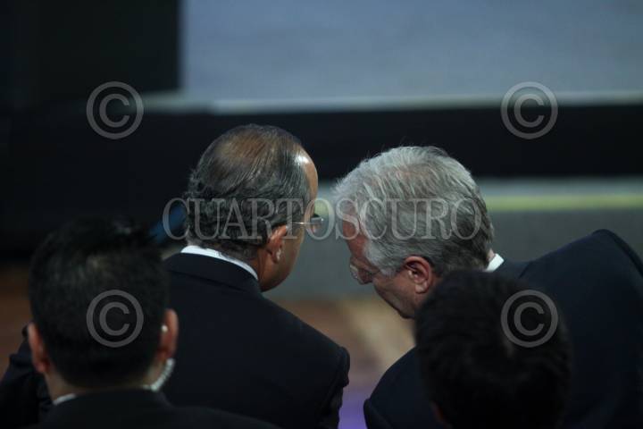 MÉXICO, D.F., 04MAYO2011.- El presidente Felipe Calderón conversa con Migual Ángel Mancera, procurador de justicia del D.F., durante la ceremonia de inauguración del "Tercer Foro Sobre Seguridad y Justicia: Construyendo Consensos Respecto a la Implementación de la Reforma Penal" que se realizo en el salón Adolfo López Mateos de la Residencia Oficial de Los Pinos. FOTO: RODOLFO ANGULO/CUARTOSCURO.COM