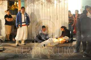 MÉXICO, D.F., 05MAYO2011.- Un sujeto de aproximadamente 50 años, pierde la vida a las afueras de una farmacia al recibir varios piquetes de arma punzo cortante al ser despojado de su Taxi. El delito registrado en la esquina de las calles Gudberto Aroche y Manuel Pérez Romero en la colonia Santa Martha Acatitla perímetro de la Delegación Iztapalapa. FOTO: LUIS CARBAYO/CUARTOSCURO.COM