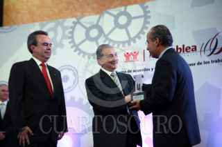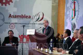 MÉXICO, D.F., 06MAYO2011.- El Presidente de los Estados Unidos Mexicanos Felipe Calderón Hinojosa durante la ceremonia de clausura de la Asamblea 100 del Instituto del Fondo Nacional de la Vivienda para los Trabajadores, en el salón Adolfo López Mateos de la residencia oficial de Los Pinos. FOTO: ARIEL GUTIERREZ/CUARTOSCURO.COM