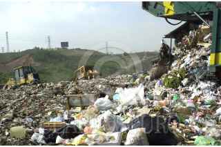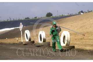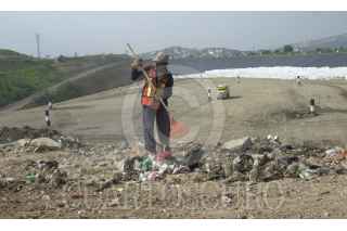 TLANEPANTLA, EDOMEX20AGOSTO2004.- Un trabajador barre en los rellenos sanitarios ubicados en el estado de México en donde se procesa diariamente cientos de toneladas. FOTO: Eunice Adorno/CUARTOSCURO.COM