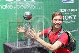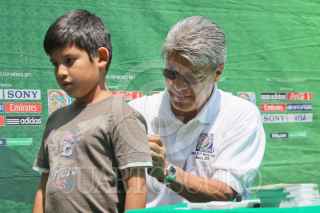 MÉXICO, D.F., 07MAYO2011.- Jesús "chucho" Ramírez, técnico campeón del mundo en la categoría del Sub 17, firmó autográfos en la el Bosque de Chapultepec durante la gira de la Copa del Mundo Sub 17, torneo que se disputará este año en nuestro país. FOTO: MOISÉS PABLO/CUARTOSCURO.COM