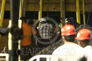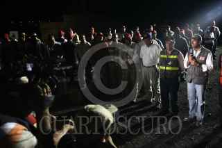 SABINAS, COAHUILA, 09MAYO2011.- Durante la madrugada de hoy, fue encontrado el último minero atrapado en la mina de carbón en el Ejido Sabinas tras la explosión que sepultó a los trabajadores la semana pasada. En conferencia con los medios de comunicación el Secretario del Trabajo Javier Lozano Alarcón junto con el gobernador de Coahuila Jorge Torres, oficializaron la conclusión de los trabajados del rescate y anunciaron que ningún atrapado se encontró con vida. Familiares del último minero encontrado se tornaron en llanto tras la noticia. FOTO: SAÚL LÓPEZ/CUARTOSCURO.COM