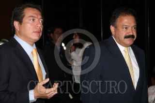 MÉXICO, D.F., 09MAYO2011.- Mario Delgado, Secretario de Educación Publica del DF junto a Armando Ahued, Secretario de Salud en la ciudad durante la inauguracion del congreso Internacional de Bullying. FOTO: ENRIQUE ORDÓÑEZ/CUARTOSCURO.COM