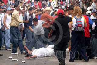 Huamantla, Tlaxcala, 21AGOSTO2004.- Una riña multitudinaria durante la fiesta de la Huamantlada dejo algunos heridos. FOTO: Moisés Pablo/CUARTOSCURO.COM