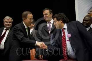 GINEBRA, SUIZA, 10MAYO2011.- Marcelo Ebrad, jefe de gobierno capitalino se reunió con el Secretario General de las Naciones Unidas, Ban Ki-Moon para presentar una colaboración al banco mundial una propuesta de ayudar y apoyar a ciudades del mundo. FOTO: CUARTOSCURO.COM