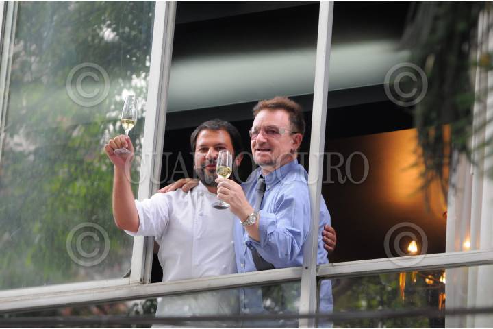 MÉXICO, D.F., 10MAYO2011.- Bono, vocalista de la banda de rock, U2, brindaron con fans con motivo del cumpleaños 51 del rockero irlandes. Esto en el marco de su gira 360 grados que comienza el 11 de Mayo en el estadio Azteca de esta capital. FOTO: FRANCISCO RODRIGUEZ/CUARTOSCURO.COM