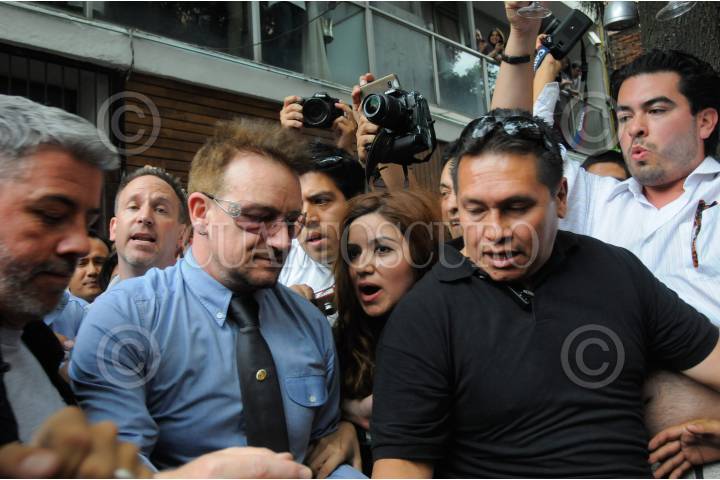 MÉXICO, D.F., 10MAYO2011.- Bono, vocalista de la banda de rock, U2, brindaron con fans con motivo del cumpleaños 51 del rockero irlandes. Esto en el marco de su gira 360 grados que comienza el 11 de Mayo en el estadio Azteca de esta capital. FOTO: FRANCISCO RODRIGUEZ/CUARTOSCURO.COM