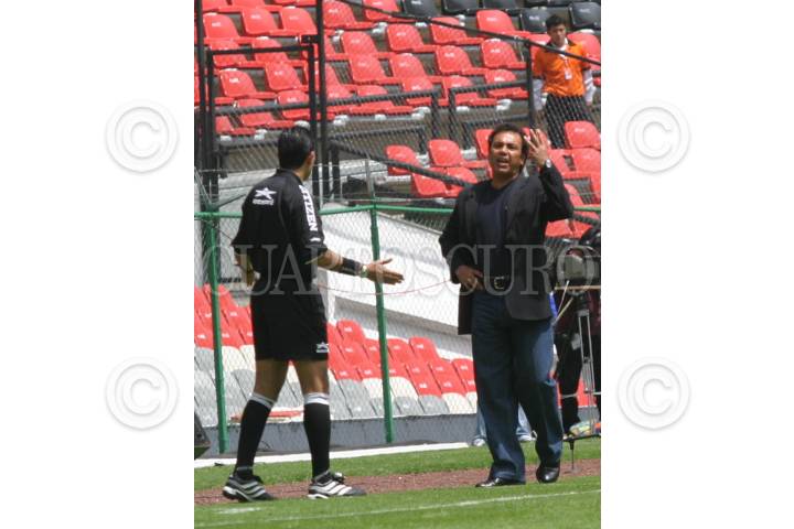 México, D.F. 22 AGOSTO 2004.- Hugo Sánchez, director técnico, reclama al árbitro uno de los dos goles que anuló de los Pumas en su encuentro con el Atlante en el Estadio Azteca. FOTO: Sandra Perdomo/CUARTOSCURO.COM