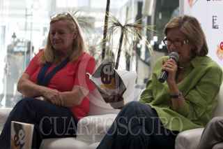 MÉXICO D.F., 12MAYO2011.- La escritora, Guadalupe Loaeza, acompañada de Paloma Saiztejero, Directora del programa Leer en Libertad, Ignacio Montero, Gerente Comercial de ADO, acudió a la estación TAPO donde fue inaugurado el Programa “Leer Mientras Viajas” el cual consiste en el préstamo de un libro el cual deberá ser devuelto al llegar a su destino, en un inicio como programa piloto se aplicara solo a los viajeros con destino a la Ciudad de Puebla. FOTO: GUILLERMO PEREA/CUARTOSCURO.COM
