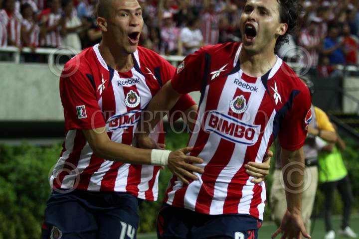 ZAPOPAN, JALISCO, 12MAYO2011.- Adolfo Bautista de las Chivas del Guadalajara pelea el balón durante el encuentro en contra de los Pumas de la UNAM; partido de ida de las semifinales del futbol mexicano del torneo Clausura 2011 que se realizó en el estadio Omnilife y quedo empatado a 1 gol. FOTO: RODOLFO ANGULO/CUARTOSCURO.COM