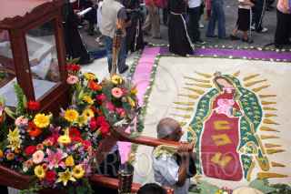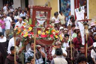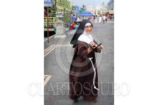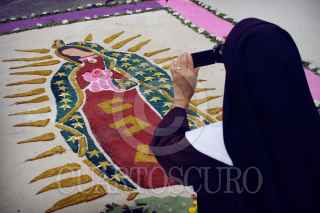 VERACRUZ, VERACRUZ., 14MAYO2011.- A 487 años de su llegada a la entonces Nueva España por la Villa Rica de la Vera Cruz, decenas de misioneros franciscanos y fieles católicos conmemoraron el arribo de los primeros evangelizadores a México en el año 1524, por lo que elaboraron tapetes gigantes hechos con arena, aserrín y flores por donde avanzó la peregrinación con gente de diversos puntos del país. FOTO: FÉLIX MÁRQUEZ/CUARTOSCURO.COM