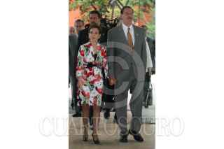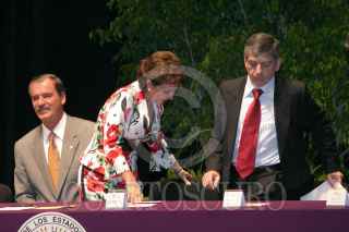 México, D.F., 23AGOSTO2004.- Vicente Fox Quesada, presidente de la República, Marta Sahagún, primera dama y Cesar Gaviria, secretario general de Organización de Estados Americanos, durante la sesión inaugural de la Segunda Reunión Interamericana de Ministros y Máximas Autoridades de la Cultura, que se realizó en el centro Nacional de las Artes. FOTO: Moisés Pablo/CUARTOSCURO.COM