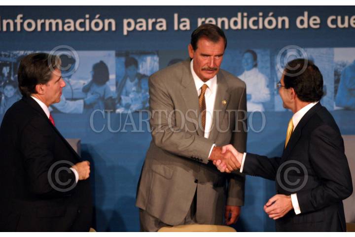 México, D.F., 23AGOSTO2004.- Vicente Fox Quesada, presidente de la República, participó en el 3er Foro Ciudadano de Salud, lo acompañaron los secretarios Julio Frenk Mora (Salud) y Eduardo Romero Ramos (Función Pública). FOTO: Moisés Pablo/CUARTOSCURO.COM