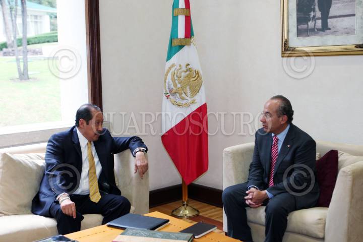 MÉXICO, D.F., 17MAYO2011.- José Guadalupe Osuna Millán, gobernador de Baja California, se reunió con Felipe Calderón Hinojosa, Presidente de México, en la residencia oficial de Los Pinos. FOTO: ALFREDO GUERRERO/CUARTOSCURO.COM