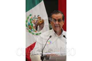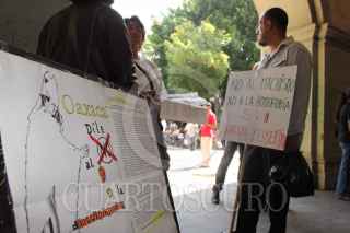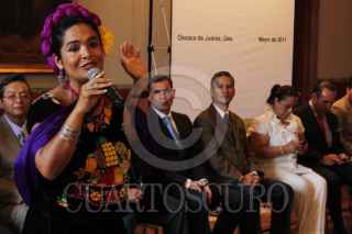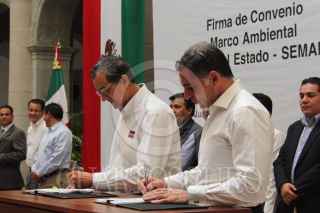 OAXACA, OAXACA, 17MAYO2011.- Gabino Cué Monteagudo, gobernador de Oaxaca, y Juan Rafael Elvira Quesada, secretario del Medio Ambiente y Recursos Naturales (Semarnat), encabezaron la firma del convenio en materia ambiental entre el gobierno del estado y la dependencia federal. FOTO: ARTURO PÉREZ ALFONSO/CUARTOSCURO.COM