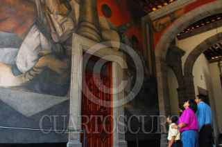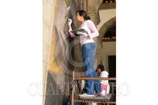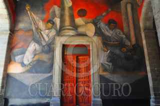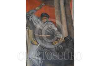 MÉXICO, D.F., 19MAYO2011.- Concluyeron los trabajos de restauración de el fresco Revolución. Su intervención, por parte de alumnos y egresados de la ENCRyM bajo supervisión del INBA, permitió recuperar una apariencia muy similar a la que debieron tener originalmente Los frescos El canto y la música, así como Revolución, que constituyen los murales más importantes realizados por el artista oaxaqueño Rufino Tamayo en los años 30 del siglo XX, dentro de la llamada Escuela Mexicana, fueron restaurados por especialistas del Instituto Nacional de Antropología e Historia (INAH-Conaculta) para su óptima conservación. Ambas obras se localizan en sedes del INAH, en inmuebles ubicados en el Centro Histórico de la Ciudad de México, en la calle de Moneda 13 y 16, donde respectivamente se alojan el Museo Nacional de las Culturas y la Subdirección de Laboratorios y Apoyo Académico. Jaime Cama Villafranca, restaurador perito del INAH, encabezó el equipo encargado de la intervención. FOTO: INAH/CUARTOSCURO.COM