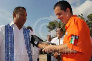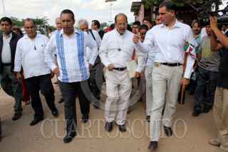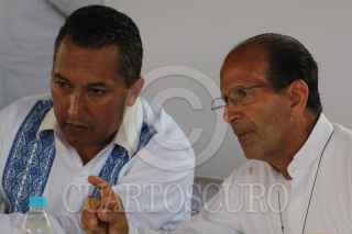 CD. IXTEPEC, OAXACA, 20MAYO2011.- José Francisco Blake Mora, secretario de Gobernación y Gabino Cué Monteagudo, gobernador del estado de Oaxaca, durante la visita del encargado de la política interna a Ciudad Ixtepec Oaxaca, donde visitó el albergue de migrantes y sostuvo una reunión de trabajo para conocer las problemáticas que enfrenta este sector. FOTO: ARTURO PÉREZ ALFONSO/CUARTOSCURO.COM