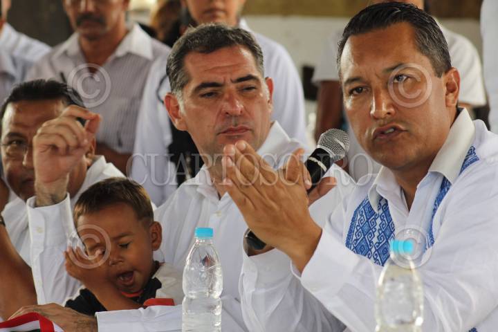 CD. IXTEPEC, OAXACA, 20MAYO2011.- José Francisco Blake Mora, secretario de Gobernación y Gabino Cué Monteagudo, gobernador del estado de Oaxaca, durante la visita del encargado de la política interna a Ciudad Ixtepec Oaxaca, donde visitó el albergue de migrantes y sostuvo una reunión de trabajo para conocer las problemáticas que enfrenta este sector. FOTO: ARTURO PÉREZ ALFONSO/CUARTOSCURO.COM