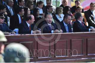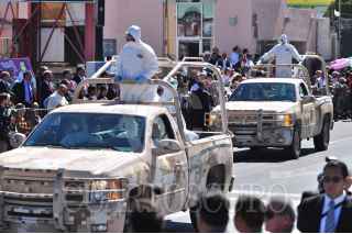 CIUDAD JUÁREZ, CHIHUAHUA, 21MAYO2011.- El titular del Ejecutivo federal Felipe Calderón Hinojosa, el Gobernador del Estado César Duarte Jáquez y decenas miles de Juarenses presenciaron esta mañana el Desfile conmemorativo del Centenario de la Toma de Ciudad Juárez. El contingente cívico militar inició el desplazamiento a las 10 de la mañana en cruce de las avenidas 16 de Septiembre y de las Américas para continuar por esa vía hasta la calle Ignacio Mariscal, y finalizar frente a la antigua Presidencia Municipal. FOTO: NACHO RUÍZ/CUARTOSCURO.COM