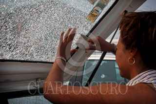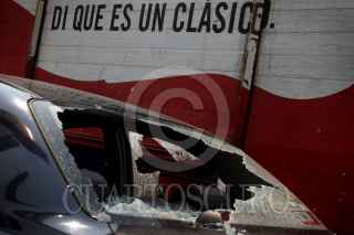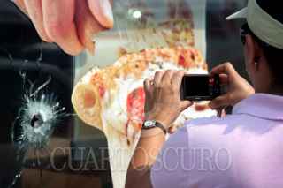 BOCA DEL RÍO, VERACRUZ., 21MAYO2011.- Aspectos de los daños provocados por el enfrentamiento de esta madrugada entre fuerzas federales y presuntos miembros de la delincuencia organizada, donde al menos 15 vehículos y diversos negocios presentan impactos de arma de fuego. FOTO: FÉLIX MÁRQUEZ/CUARTOSCURO.COM
