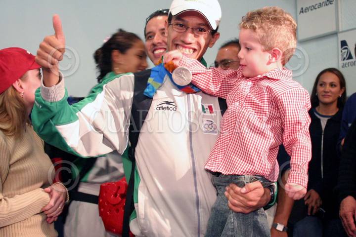 México, D.F., 31AGOSTO2004.- Iridia Salazar y Oscar Salazar medalla de bronce y plata respectivamente en las olimpiadas de Atenas 2004, llegaron ayer a media noche a la capital. FOTO: Moisés Pablo/CUARTOSCURO.COM