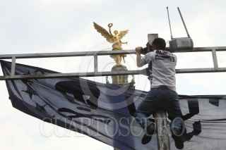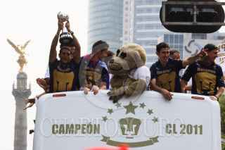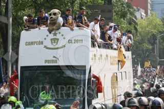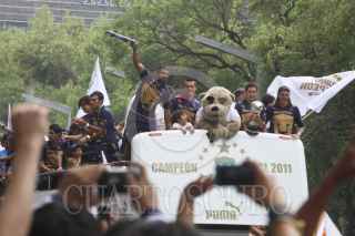MÉXICO, D.F., 22MAY02011.- Miles de aficionados se concentraron en la avenida reforma para esperar al club PUMAS de la UNAM el cual recorrió la avenida en turibus para festejar el séptimo campeonato en el torneo mexicano de fútbol. FOTO: ENRIQUE ORDÓÑEZ/CUARTOSCURO.COM