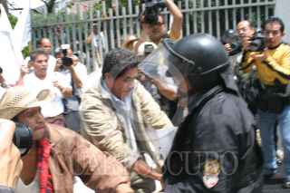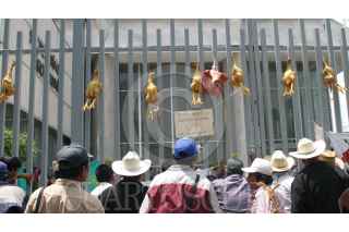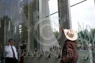 México, D.F. 31 AGOSTO 2004.- Los campesinos miembros de diversas organizaciones, al no ser recibidos por autoridades de la secretaria de Economía mancharon los ventanales con esteiercol de vaca. FOTO: Sandra Perdomo/CUARTOSCURO.COM