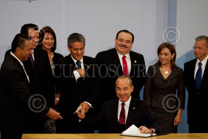 MÉXICO, D.F., 24MAYO2011.- Felipe Calderón Hinojosa, Presidente de los Estados Unidos Mexicanos, firmó el decreto que expide la Ley de Migración en la residencia oficial de Los Pinos. FOTO: MOISÉS PABLO/CUARTOSCURO.COM