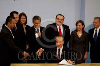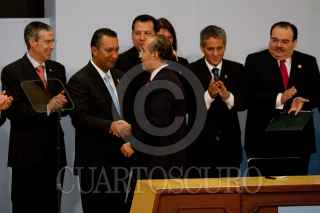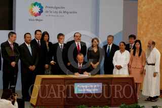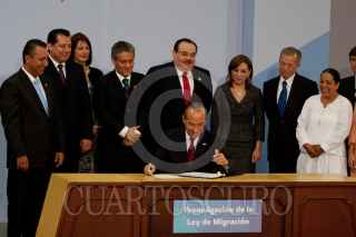 MÉXICO, D.F., 24MAYO2011.- Felipe Calderón Hinojosa, Presidente de los Estados Unidos Mexicanos, firmó el decreto que expide la Ley de Migración en la residencia oficial de Los Pinos. FOTO: MOISÉS PABLO/CUARTOSCURO.COM