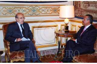 PARÍS, FRANCIA, 24MAYO2011.- El presidente de la mesa directiva del Senado de la República Senador Manlio Fabio Beltrones, sostuvó una reunión de trabajo con el Ministro de Asuntos Exteriores y Europeos del Gobierno de Francia, Alain Juppé, en la cancillería francesa. FOTO: CUARTOSCURO.COM