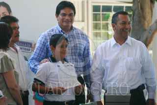 CULIACAN, SINALOA, 24MAYO2011.- José Francisco Blake Mora, Secretario de Gobernacion, junto a Mario López Valdez, Gobernador del estado durante el evento donde se inauguro el registro de la Cédula de Identificación Personal en la escuela primaria Héroes de 1864. FOTO: RASHIDE FRIAS/CUARTOSCURO.COM