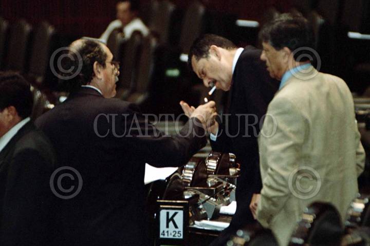 El priista Fidel Herrera discute con Francisco José Paoli del PAN durante la sesión ordinaria en San Lazaro.