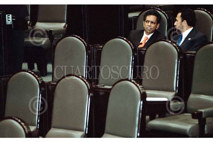 El priista Fidel Herrera discute con Francisco José Paoli del PAN durante la sesión ordinaria en San Lazaro.